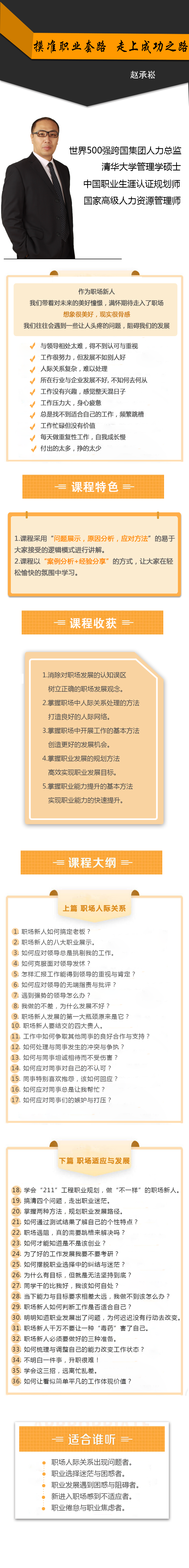 本课程针对职场新人常见的职业发展问题,教会大家摸准职场发展的基本套路,少走弯路,让职业发展变得更快、更好、更高!