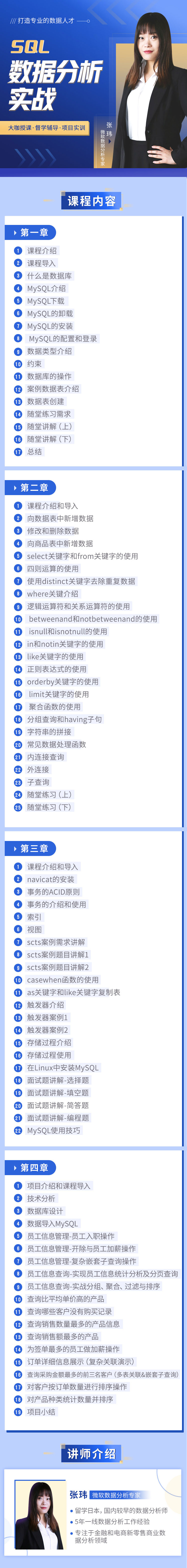 本课程为大数据分析的中级阶段,此阶段侧重于数据的分析和建模。通过对基本的数理统计知识的学习和SQL的学习,达到利用高级数据分析、数据挖掘工具及方法对业务分析预测的目的。