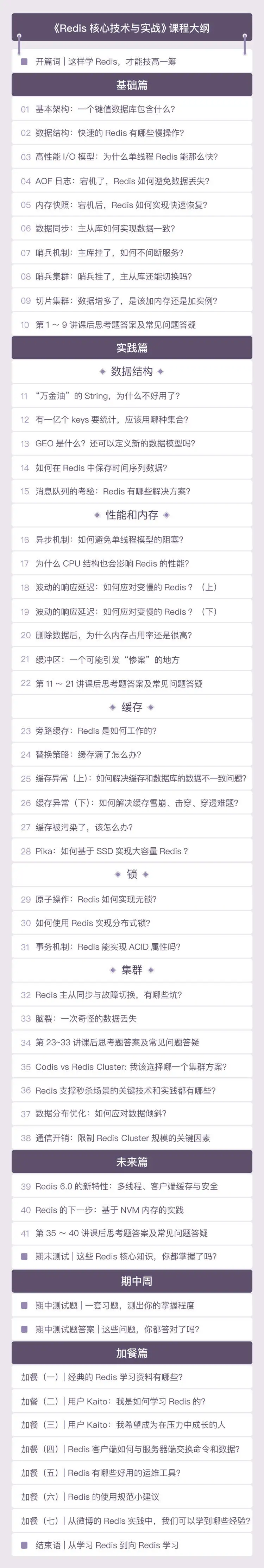 除此之外,蒋德钧还会具体分析常见的问题以及应对方案,讲解 Redis 在典型场景(比如缓存、秒杀)中的应用,让你能够快速掌握行之有效的实战经验,并应用在自己的 Redis 项目中,全方位提升你的实战能力。