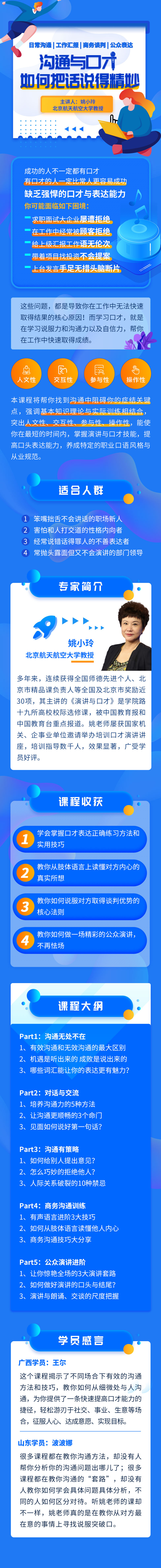 本课程将帮你找到沟通中阻碍你的症结关键点,强调基本知识理论与实际训练相结合,突出人文性、交互性、参与性、操作性,能使你在最短的时间内,掌握演讲与口才技能,提高口头表达能力,养成特定的职业口语风格与从业规范。