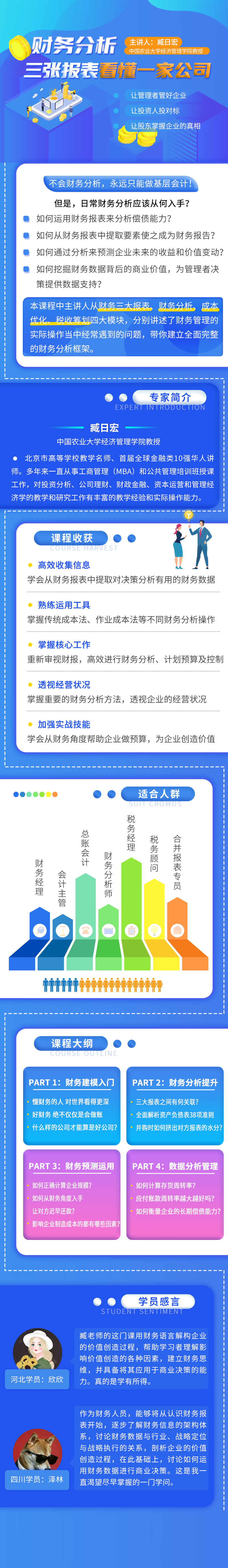 如何从财务报表中提取要素使之成为财务报告?如何通过分析来预测企业未来的收益和价值变动?如何挖掘财务数据背后的商业价值,为管理者决策提供数据支持?本课程中主讲人从财务三大报表、财务分析、成本优化、税收筹划四大模块,分别讲述了财务管理的实际操作当中经常遇到的问题,带你建立全面完整的财务分析框架。