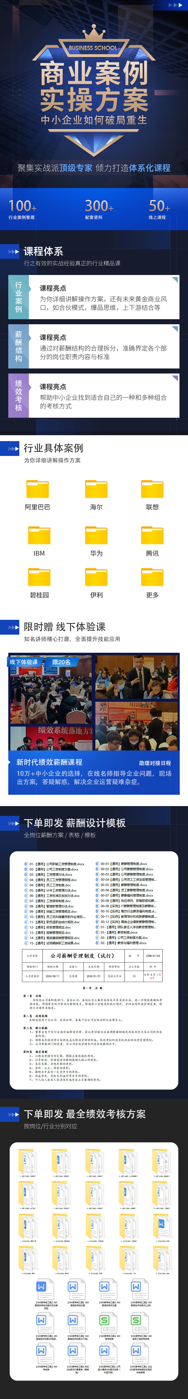 为你详细讲解操作方案。还有未来黄金商业风口,如合伙模式,爆品思维,上下游结合等。通过对薪酬结构的合理拆分,准确界定各个部分的岗位职责内容与标准。帮助中小企业找到适合自己的一种和多种组合的考核方式。