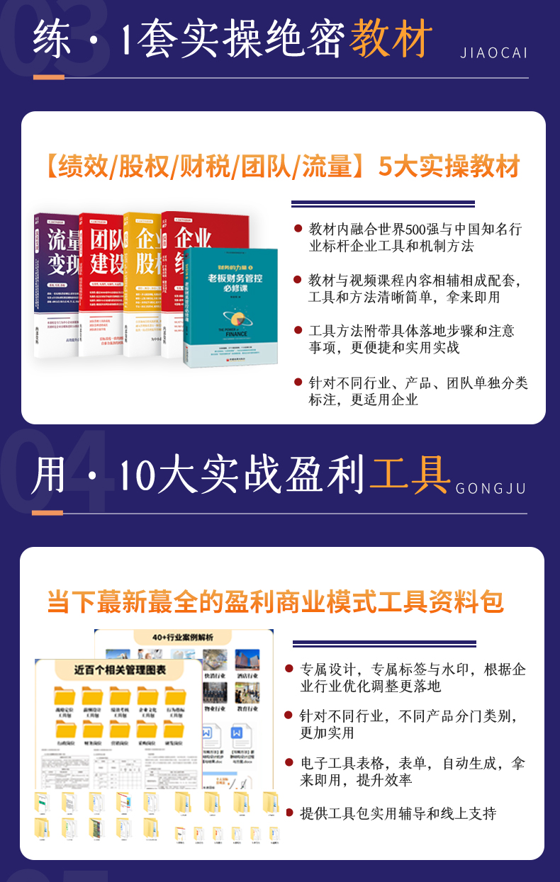 下单立即赠送绩效/股权/财税/团队建设/流量变现5大板块工具教材,5选1(包邮到家),下单后务必进入售后群兑换资料和工具教材!