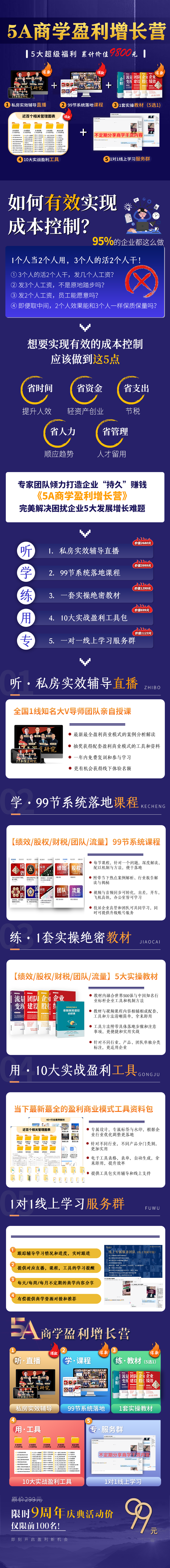 6.5大模块【绩效、股权、财税、团队、流量】99节系统课程。 7.每节课程,针对一个问题,深度解读,配以机制与方法,便于落地。 8.附带当下热点案例解析、行业报告解读与揭秘。 9.视频与音频同步可转化,出差,开车,飞机高铁,办公室皆可学习。 10.投屏企业高管和团队可共同学习,同时可提供升级账号服务。