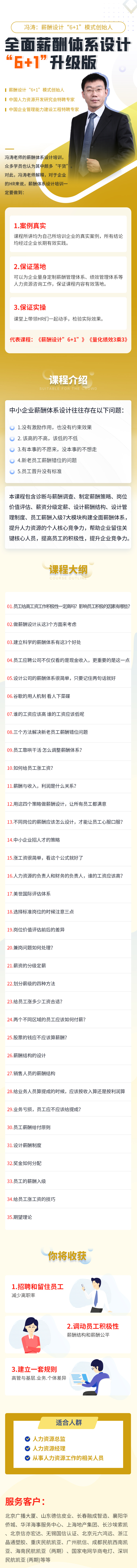 本课程包含诊断与薪酬调查、制定薪酬策略、岗位价值评估、薪资分级定薪、设计薪酬结构、设计管理制度、员工薪酬入级7大模块构建全面薪酬体系,提升人力资源的个人核心竞争力,帮助企业留住关键核心人员,提高员工的积极性,提升企业竞争力。