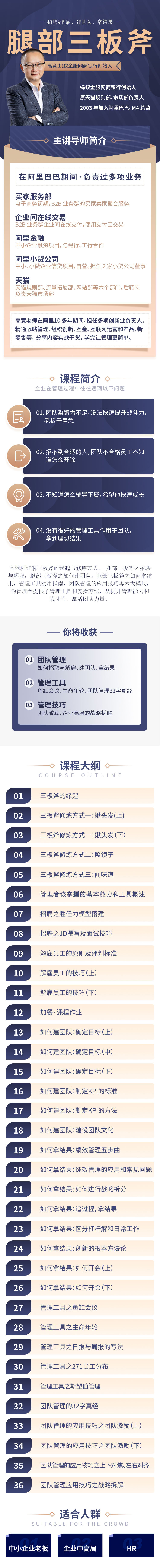 本课程详解三板斧的缘起与修炼方式,腿部三板斧之招聘与解雇,腿部三板斧之如何建团队,腿部三板斧之如何拿结果,管理工具实用指南,团队管理的应用技巧等六大模块,为管理者提供了管理工具和实操方法,从提升管理能力和战斗力,激活团队力量,业绩倍增。