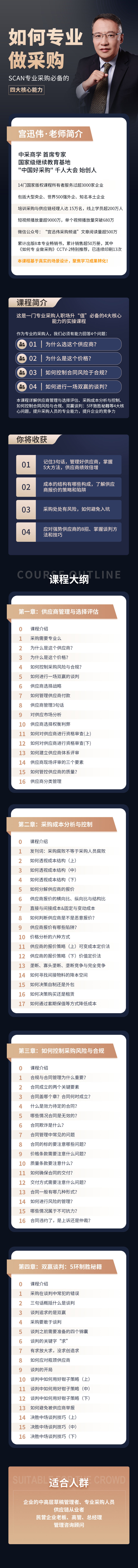 本课程详解供应商管理与选择评估、采购成本分析与控制、如何控制合同风险与合规、双赢谈判:5环致胜秘籍等4大核心问题,提升采购人员的专业能力,提升企业的竞争力。
