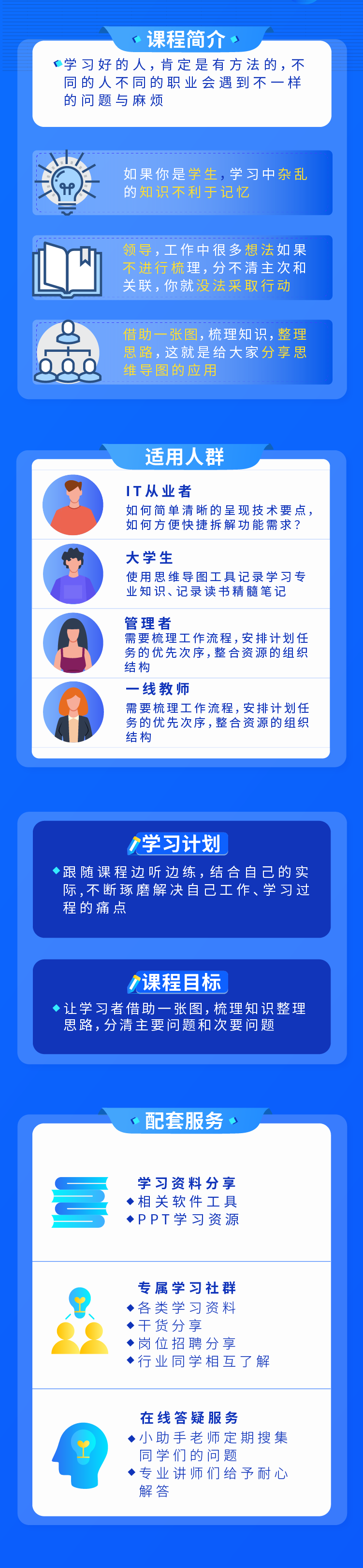 学习好的人,肯定是有方法的,不同的人不同的职业会遇到不一样的问题与麻烦: 如果你是学生,学习中杂乱的知识不利于记忆; 如果你是领导,工作中很多想法如果不进行梳理,分不清主次和关联,你就没法采取行动; 借助一张图,梳理知识,整理思路,这就是给大家分享思维导图的应用。